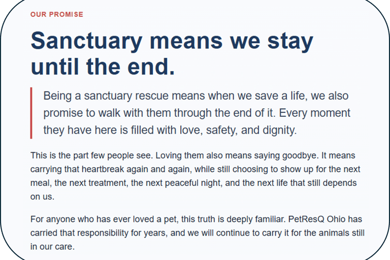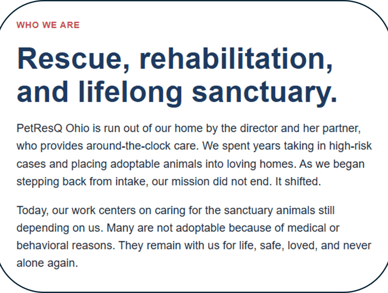 For over 20 years, PetResQ Ohio has taken in the animals others gave up on: the sick, the broken, the forgotten, and the ones who needed sanctuary, not just rescue.